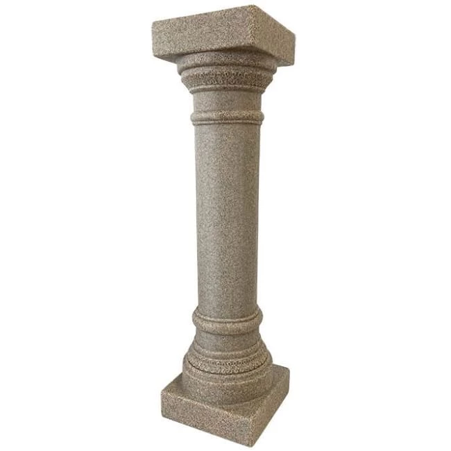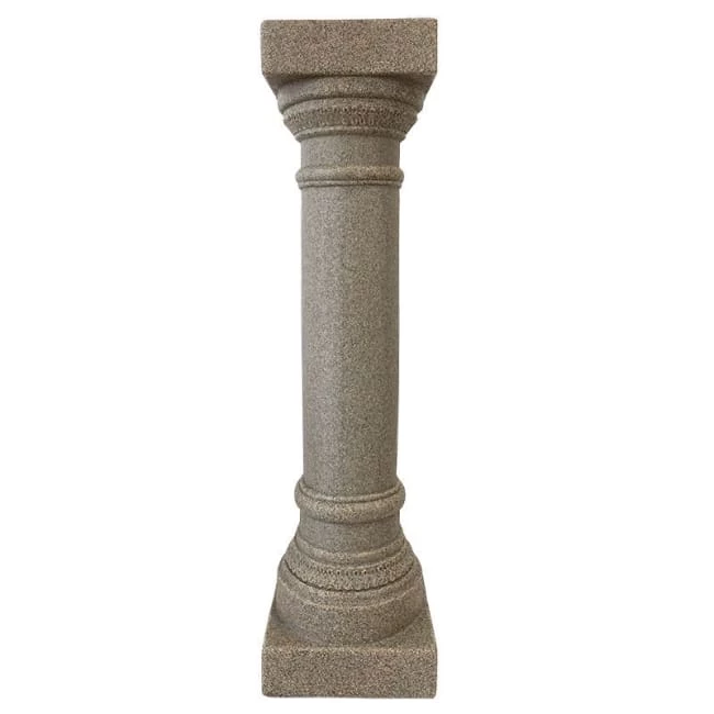 Classically and easily elevate the motif of your backyard or landscaping using this Emsco Group Sandstone Colored Greek Column Pedestal. The center, rounded support, square top and base, and raised accents throughout this resin piece bring a bit of classical Greek style to the forefront of your yard, while creating a place to showcase a potted plant or other adornment. A bevy of dark and light brown hues throughout the unit evoke sandstone, enhancing your garden greenery easily. The 8.75″ square top holds potted plants with an 8″ diameter or smaller base, or can showcase a horizontal sundial with a level bottom readily. Fill this unit with sand or gravel by removing the rubber plug on its base, for stability when placed outdoors. Its 9″ square footer rests on a level surface in your landscaping or on your patio with ease, and the raised bands and slight scrollwork at the top and base further the traditional motif. The resin body and tan color look great and evoke sandstone, and the piece weathers beautifully for many seasons of service. Create a timeless display for your garden accent using this Sandstone Colored Greek Column Pedestal. Made in the USA.