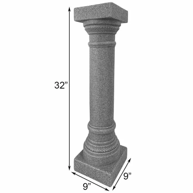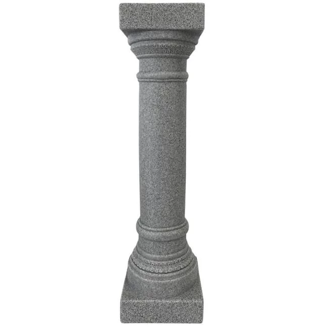 Classically and easily elevate the motif of your backyard or landscaping using this Emsco Group Granite Colored Greek Column Pedestal. The center, rounded support, square top and base, and raised accents throughout this resin piece bring a touch of classical Greek style to the forefront of your yard, while creating a place to showcase a potted plant or other adornment. A bevy of dark and light gray, mottled hues throughout the unit evoke granite, furthering the motif. The 8.75″ square top holds potted plants with an 8″ diameter or smaller base, or readily showcases a horizontal sundial with a level bottom. Fill this column with sand or gravel by removing the rubber plug on its base, for stability when placed outdoors. Its 9″ square footer rests on a level surface in your landscaping or on your patio with ease, and the raised bands and slight scrollwork at the top and base complete the timeless look. The resin body and gray color look great and evoke granite, and the piece weathers beautifully for many seasons of service. Create a timeless display for your garden accent using this Granite Colored Greek Column Pedestal. Made in the USA.