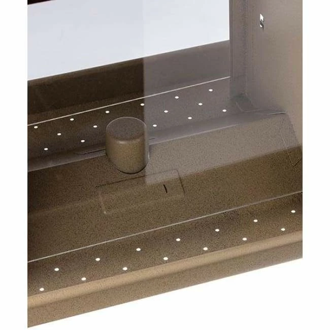 Offer two types of treats to your backyard birds with this Stokes Large Hopper Feeder with Suet Cages. The rectangular shape, steel frame, and brown hues add a traditional look to your bird garden, while remaining usable for many seasons. Two clear, plastic panels complete the center reservoir, which easily holds 5.6 quarts of sunflower, safflower, or mixed seed. An integrated seed diverter at the base of the unit directs the food toward the bottom gaps, enabling several birds to dine. For added avian activity, place a standard suet cake in each of the two suet cages, affixed to the two ends of the unit. The 1″ x 0.5″ rectangular grid offers birds ready access to the suet, and the cages both open at the top to clean or refill them. A generous, copper colored roof completes the piece, keeping the food dry and fresh. A plastic coated cable through the lid makes it simple to hang the feeder, and allows you to lift it in moments for refilling. For a different look, pole mount the piece on a 1″ outer diameter pole using its integrated mounting socket. The metal and plastic construction forms a durable item, and the brown hues throughout mesh with your landscaping. Keep several bird species fed by adding this Large Hopper Feeder with Suet Cages to your yard.